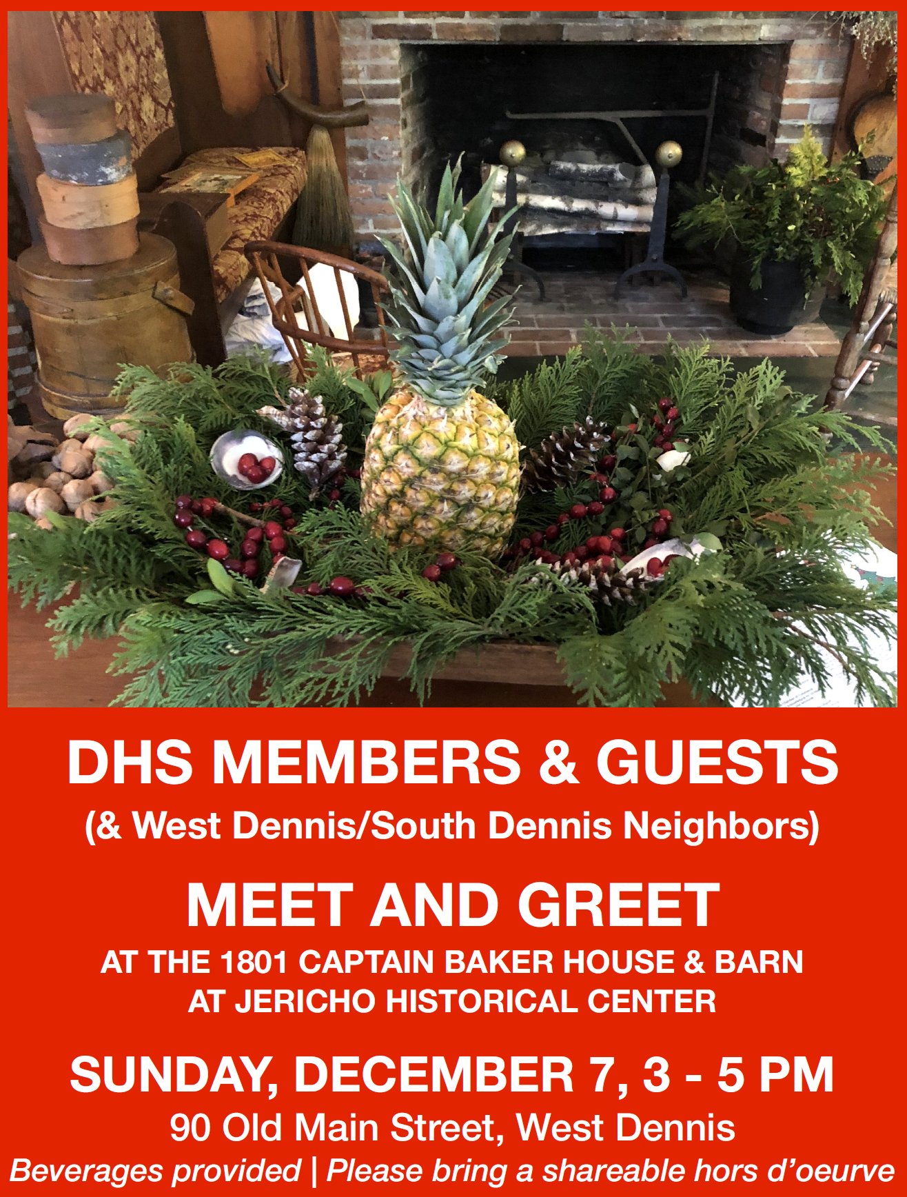 Society members, their guests and neighbors will celebrate the Holiday Season by gathering at the Jericho Historical Center.