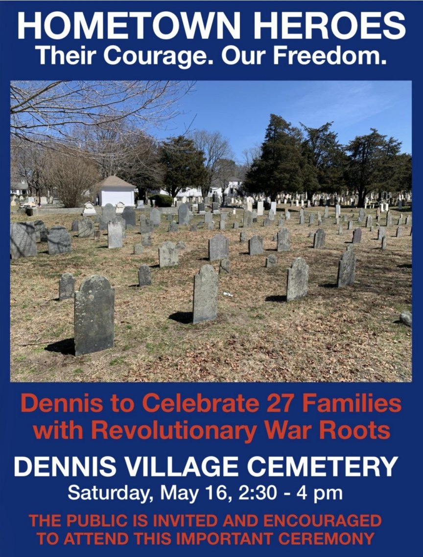 Don't miss this celebratory event honoring those buried in Dennis cemeteries who served during the American War for Independence with a special plaque dedication.